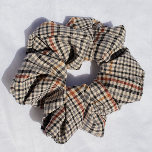 Who doesn’t love plaid? The Charlie is a beautiful beige scrunchie with earthy tones of red, black and white.